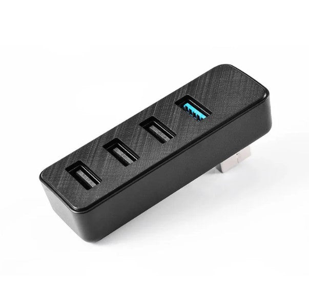 The 4-in-1 USB hub includes a dedicated blue port for powering your dash cam, plus three additional expandable ports for devices like USB drives, gamepads, and ambient lighting controls.